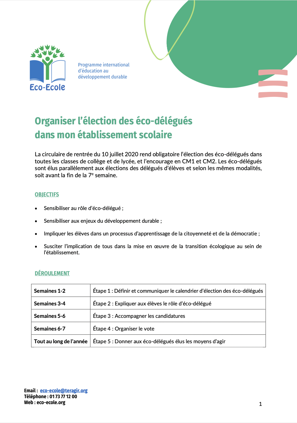De nombreuses ressources existent sur les éco-délégués, et permettront de répondre à vos questions concernant le mode de désignation, les missions des éco-délégués, les classes concernées, etc. En voici quelques unes, comme ce communiqué de l’Education nationale ou cette page d’Eduscol ; il en existe bien d’autres !